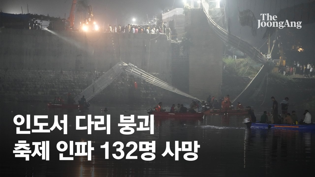 인도 서부에서 축제 기간 인파가 몰린 다리가 무너져 130여 명이 목숨을 잃었습니다.